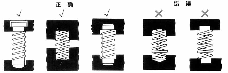 2. 彈簧安裝在平底孔里沒有導桿時,孔的深度至少要達到彈簧二圈。